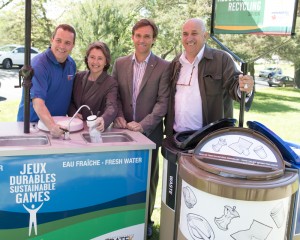 De gauche à droite: Patrice Cordeau, directeur du service de développement durable des Jeux d’été du Canada 2013 – Shebrooke, Manon Laporte, PDG d’Enviro-accès, Carl Blanchet, directeur corporatif chez Cascades et Pierre Morency, président du Conseil régional de l’environnement de l’Estrie.